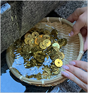 期間中、対象売場にて財布をお買い上げの先着200名様に、強運厄除けの神・東京銭洗い弁天の杜 小網神社で清めてきた「五円玉(1枚)」をプレゼントいたします。